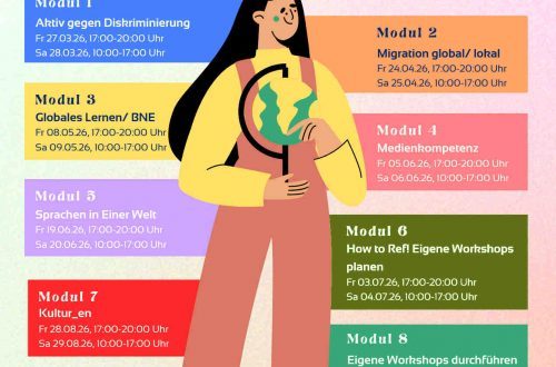 Über weitere Workshops, Thementage und Events informiert außerdem unser monatlicher Newsletter. Dort findet Ihr auch unsere Buchempfehlung des Monats, eine Kurzinfo aus dem Bereich Bildung für nachhaltige Entwicklung und unsere Kooperationen mit anderen Inititativen. Zur Newsletteranmeldung geht es hier lang.